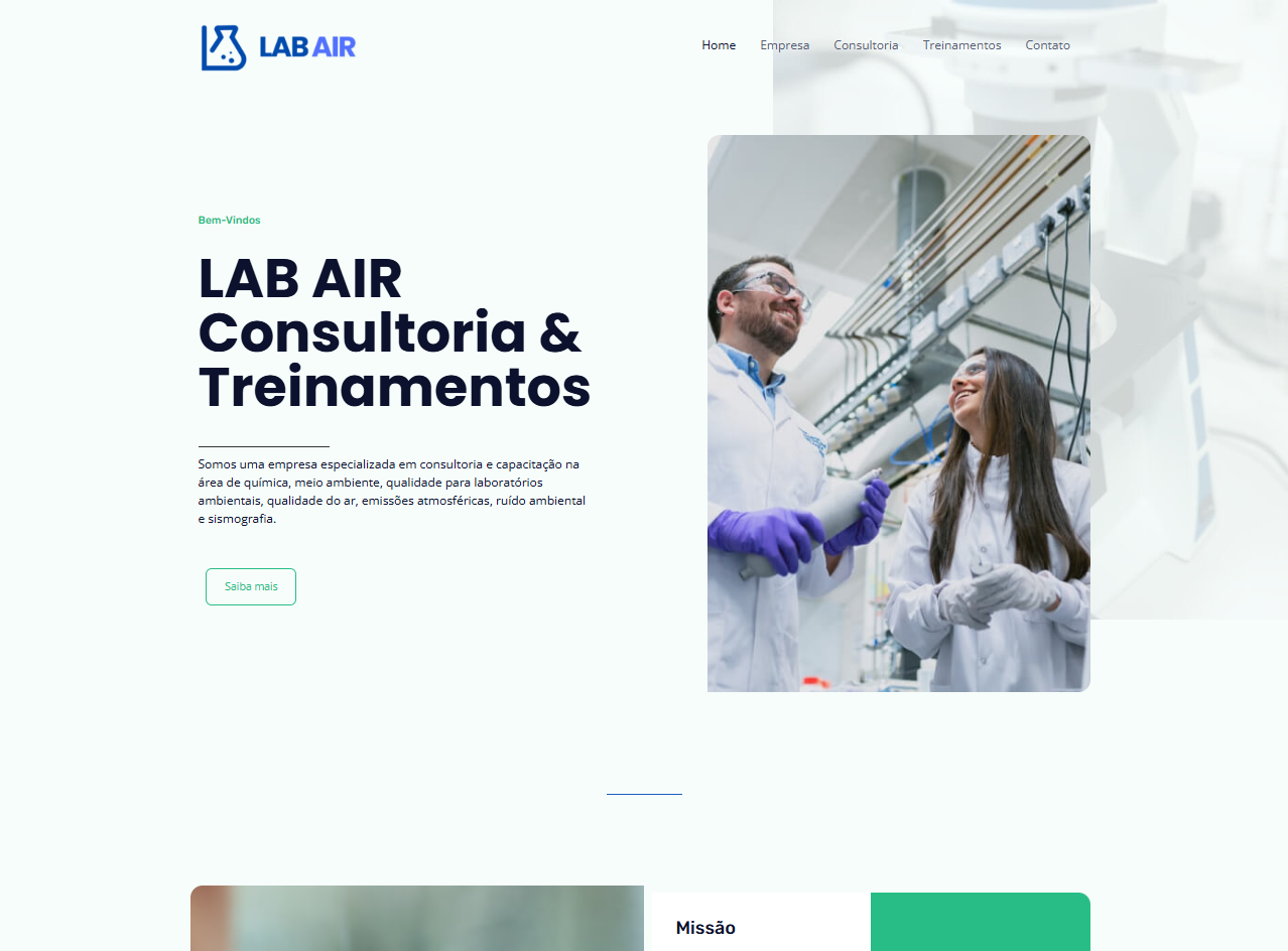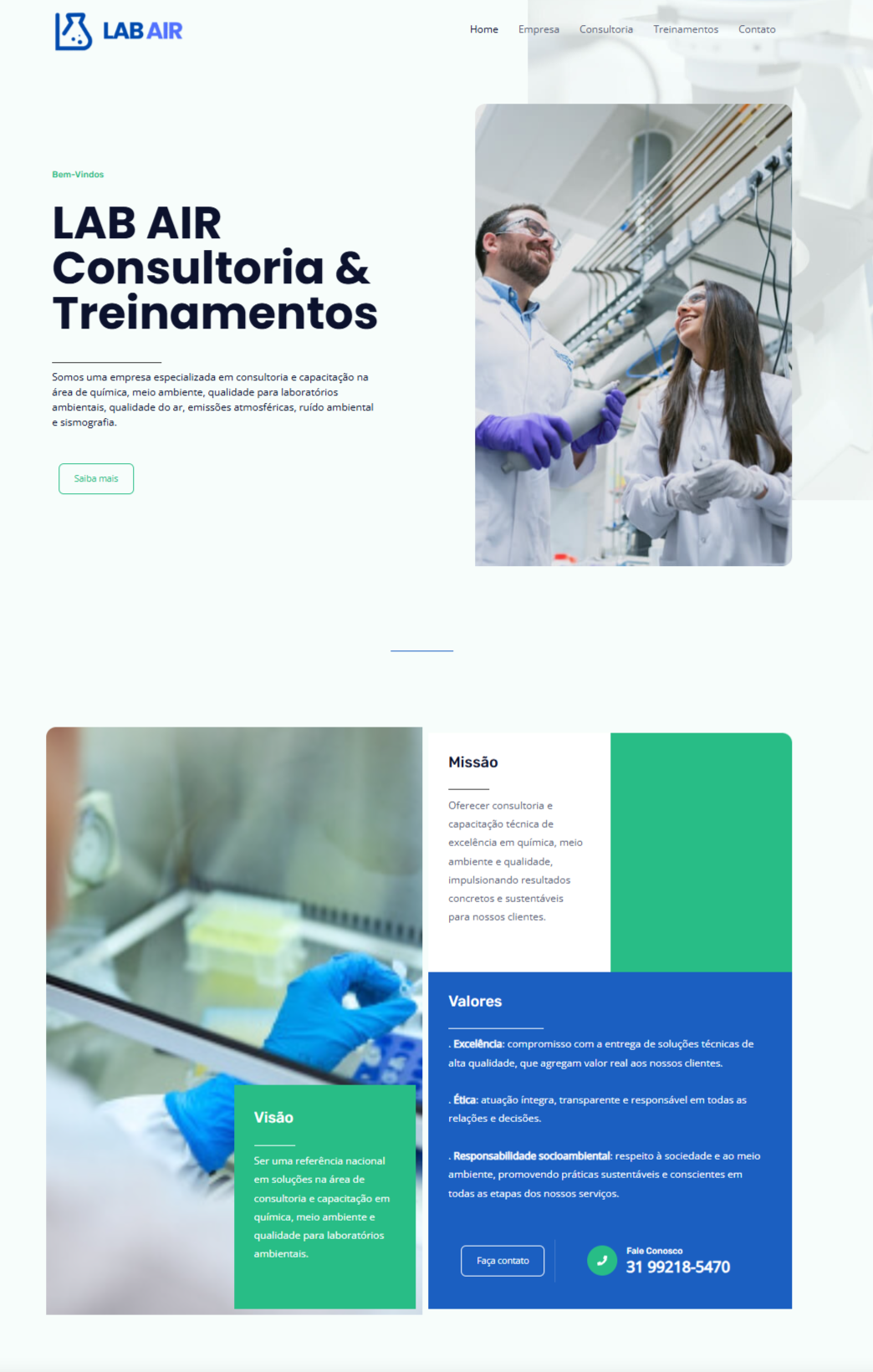 O site foi projetado com foco na experiência do usuário, oferecendo navegação intuitiva e acesso rápido às informações sobre serviços, treinamentos e áreas de atuação. A integração dos elementos do branding reforça a identidade da LAB AIR, enquanto a otimização para dispositivos móveis garante uma experiência fluida e acessível em qualquer tela.