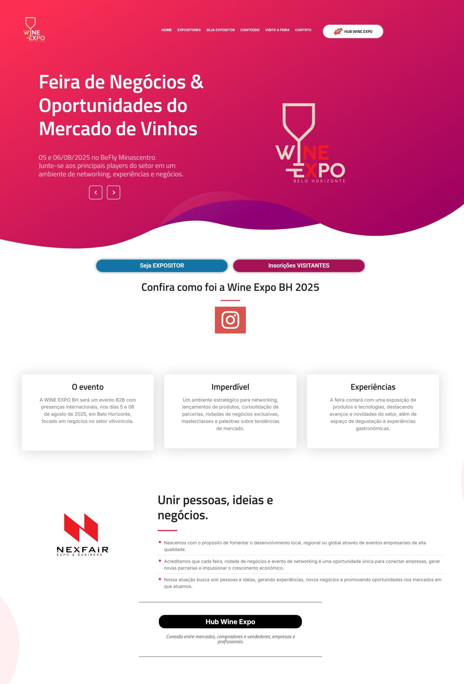 Para a Wine Expo, foi desenvolvido um trabalho completo de branding, identidade visual e design de website, com o objetivo de promover o setor vitivinícola e conectar produtores, importadores, especialistas e apreciadores em um ambiente de negócios, conhecimento e networking.