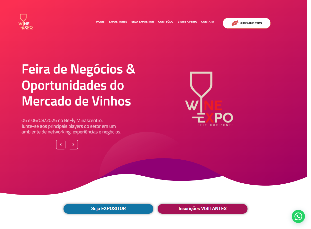 O website foi projetado com foco na experiência do usuário, oferecendo navegação intuitiva e acesso rápido às informações sobre programação, palestras, masterclasses e expositores. A integração dos elementos do branding reforça a identidade da Wine Expo, enquanto a otimização para dispositivos móveis garante uma experiência fluida em qualquer plataforma.